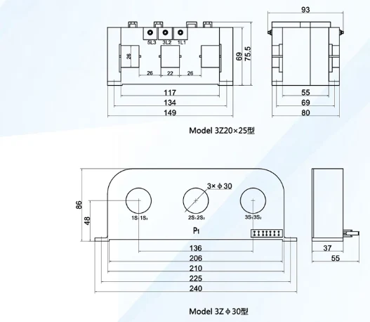 BH- 0.66 Series Z ปัจจุบันหม้อแปลงไฟฟ้าเป็นแบบรวมสามเฟสโครงสร้างขนาดกะทัดรัดซึ่งส่วนใหญ่จะใช้กับตู้กระจายแบบแยกคงที่ซึ่งมีข้อได้เปรียบของการเชื่อมต่ออย่างง่ายการวัดปัจจุบันการวัดพลังงานไฟฟ้าและการป้องกันการถ่ายทอด